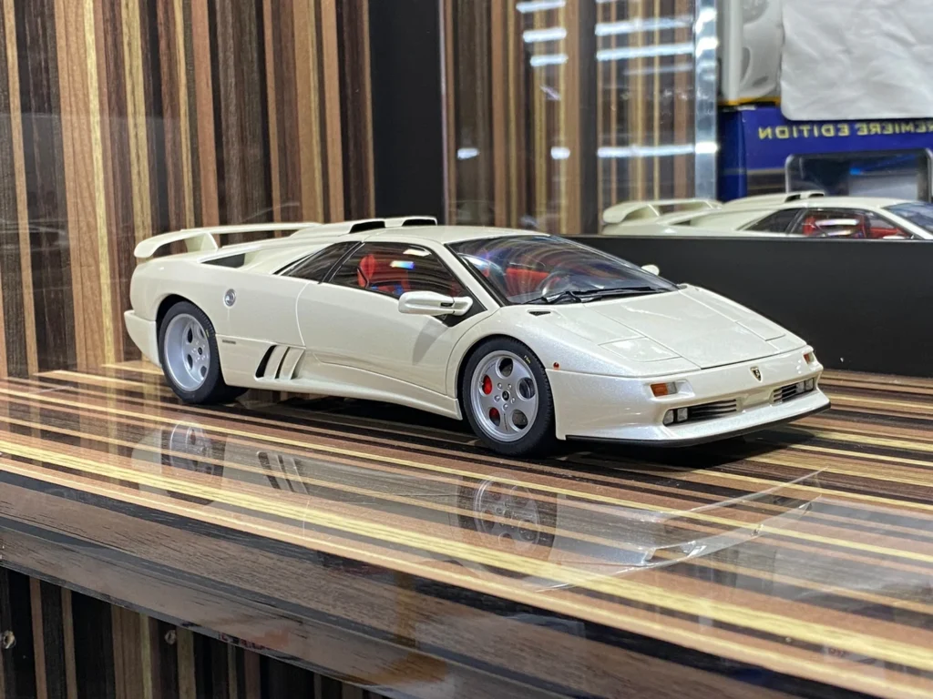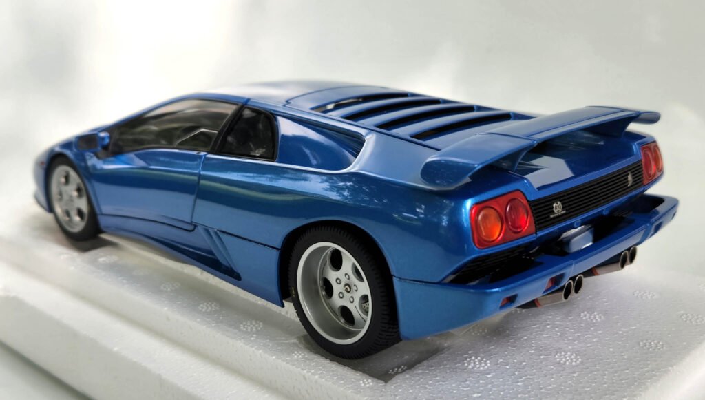 Autoart capturó con precisión los detalles distintivos de esta versión, como los paneles específicos de la carrocería, el interior más espartano y las líneas agresivas que lo diferencian del Diablo estándar. El modelo mantiene excelentes proporciones y un alto nivel de realismo.