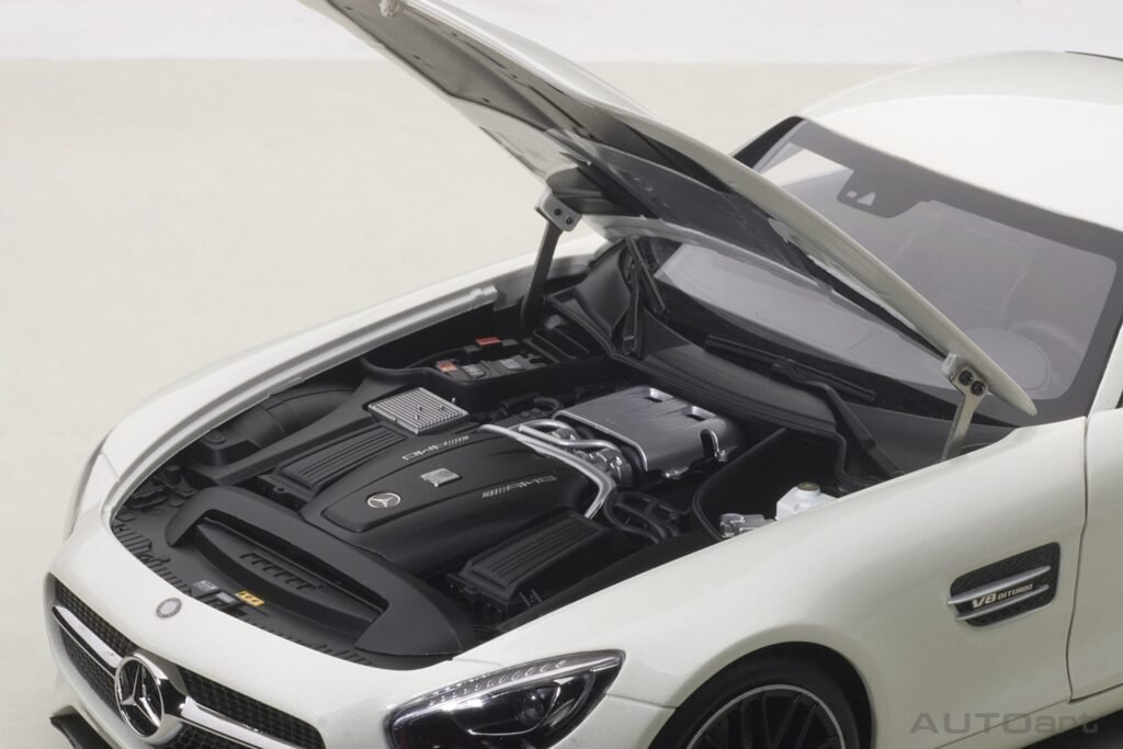 El Mercedes-AMG GT R de Autoart se destaca por la precisión con la que se reproducen los ensanches de carrocería y el alerón trasero fijo, elementos clave que lo diferencian visualmente del AMG GT y GT S estándar en escala.